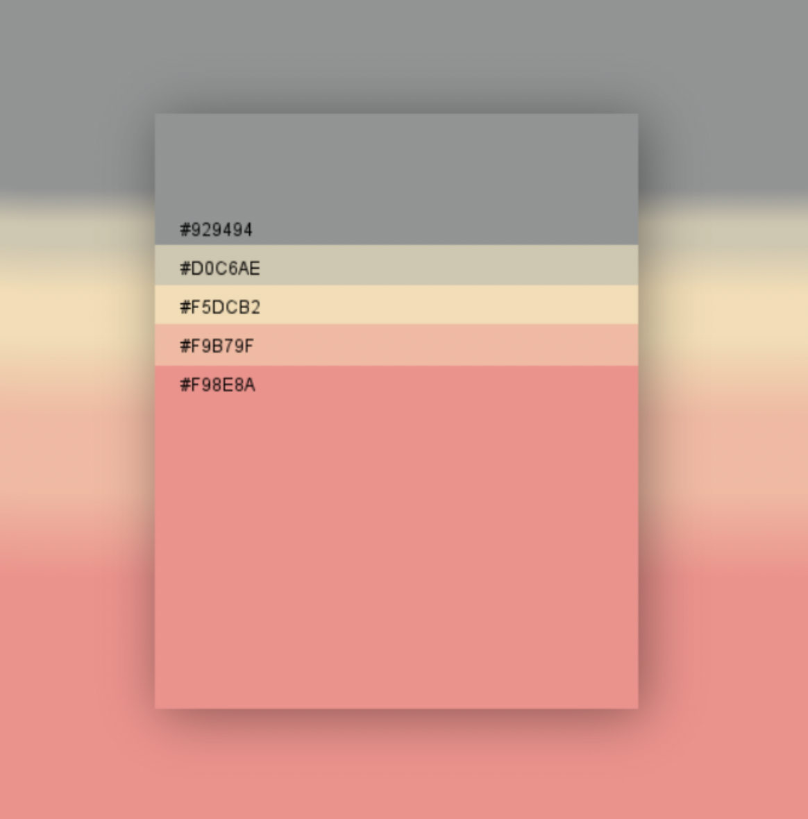 | #929494 | #D0C6AE | #F5DCB2 | #F9B79F | #F98E8A |