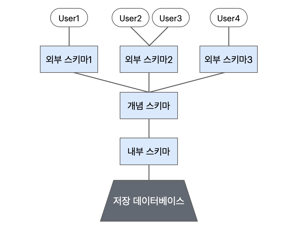 4. ํ๋์ ์ธ๋ถ ์คํค๋ง๋ฅผ ์ฌ๋ฌ๊ฐ์ ์์ฉ ํ๋ก๊ทธ๋จ ํน์ ์ฌ์ฉ์๊ฐ ๊ณต์ ํ ์ ์๋ค.
