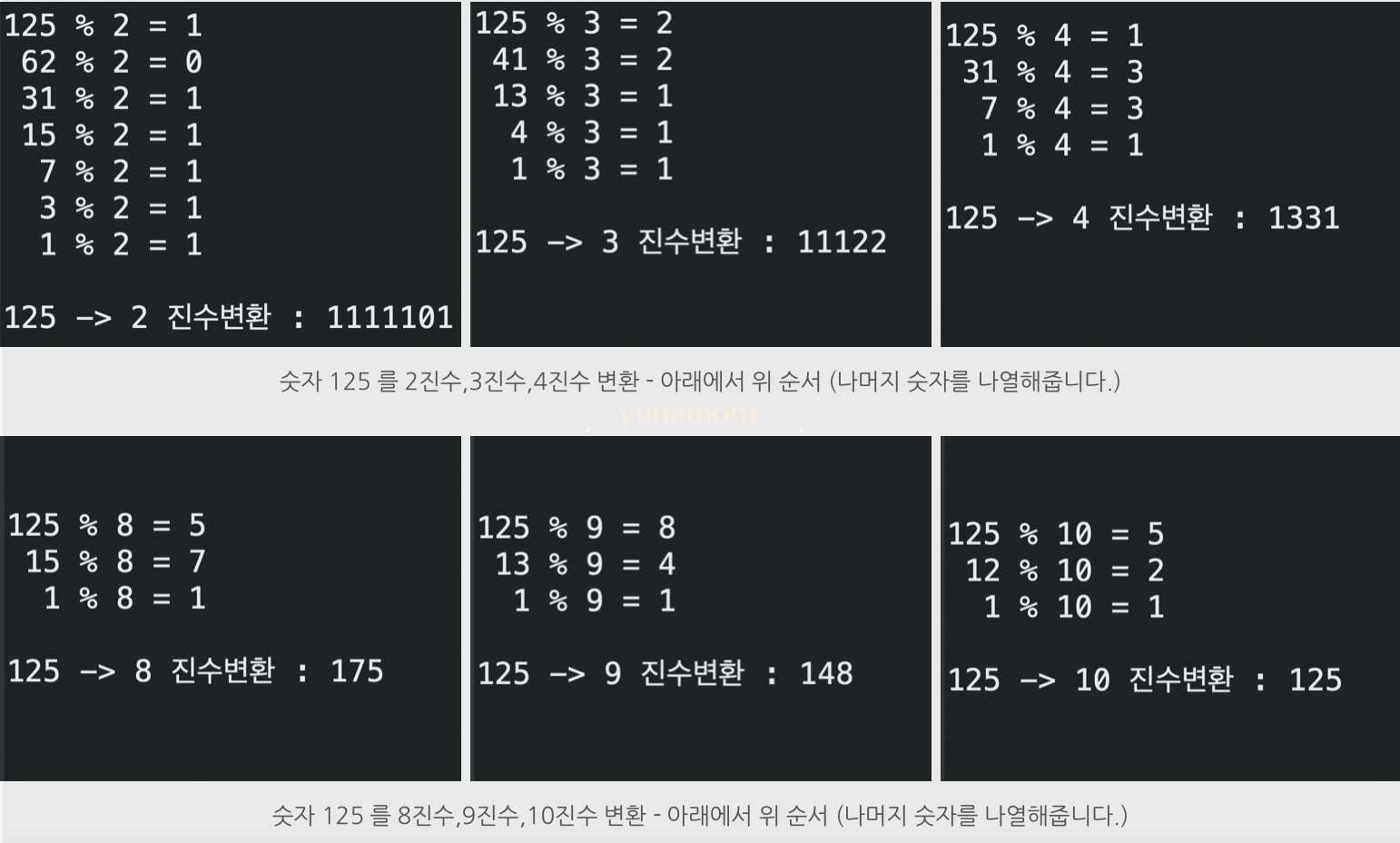 return "\n125 -> "+x+" ์ง์๋ณํ : "+s;