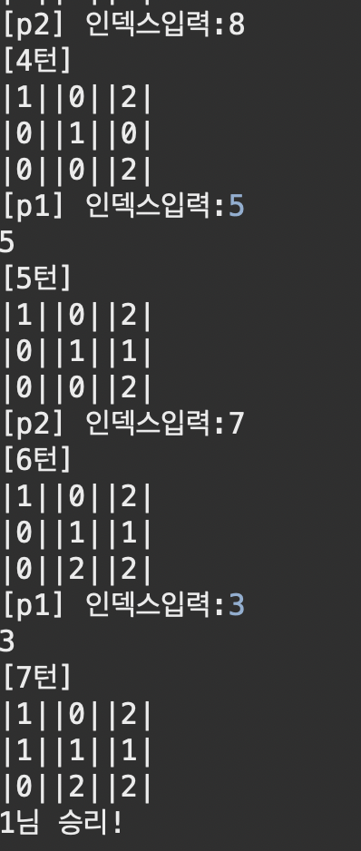 if(tic[i]==p) { //๊ฐ๋ก ์ฒดํฌ